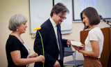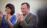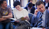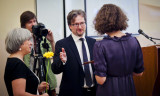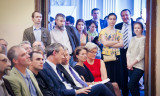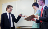 Parting wishes to the graduates were expressed by professor of the History Department Evgenii Anisimov, and Rector of the New Economic School Sergei Guriev. During the ceremony Leonid Borkin was awarded a degree of Honorary Adviser of EUSP. The ceremony ended with the informal communication in the Golden Hall.