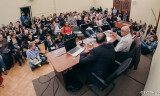 Jean-Luc Nancy is one of the most prominent philosophers of our time: he began his work in the 60s-70s in the school formed around Jacques Derrida, but later organized a new school of philosophy in Strasbourg with Phillippe Lacoue-Labarthe. Professor Nancy concerns himself with developments in deconstruction and French Heideggerian philosophy which are connected with the nature of social relations. Today's events have been arranged around Jean-Luc Nancy’s theological reflections, which seemed to fit well within a contemporary sociohistorical context.