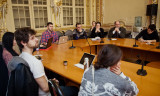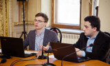 The floor was then open for questions. It seemed as if Ilya Yablokov had kept the best anecdotes and examples of other cases of conspiracy theories for this last part of the event. EUSP students were asking questions on numerous issues related to the USA, Russia and Ukraine. Artem Magun, the Dean of the Department of Political Science and Sociology, EUSP was more interested in Yablokov's methodological and theoretical approach and seemed to like the joke about Americans being lucky to have only one Fox Channel while Russians have to watch more of similar content on numerous channels.