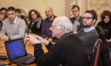 The meeting began with a round table discussion, at which Professor Burawoy and colleagues from the Laboratory of Public Sociology Ilia Matveev and Svetlana Erpyleva discussed issues and outlooks for public sociology in Russia. The sociologists presented the story of the lab foundation, spoke about what, in their opinion, should constitute public sociology in Russia, and shared their experience in producing public sociology research. What is the specific context in which public sociology tries to make visible its activities? In Russia, there are three basic issues public sociology faces. First, the public sphere in Russia is extremely weak and civil society is fragmented. Second, people don’t trust the media. And third, the government is suspicious of this type of activity.