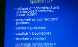 The spatial turn is first and foremost a criticism of naturalizing and universalizing narratives (essentialism). Secondly, it implies the conceptualization of phenomena in terms of displacement from the center to the periphery, from capitols to borders, from structure to context, from sovereign national governments to transnational networks and flows. Two disciplines that each lay claim to a special understanding of space form the foundation of the spatial approach: geography and architecture.