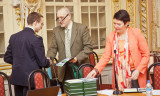 В начале встречи были вручены дипломы стипендиатам программы поддержки студентов, получающих образование в сфере энергетики и экономики. Награды получили студенты Горного института, Морского технического университета и слушатели ЕУСПб. После официальной церемонии награждения господин Дребенцов прочел доклад о предполагаемом уровне развития мирового энергетического рынка до 2035 года.